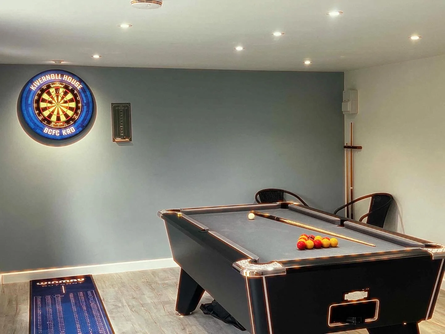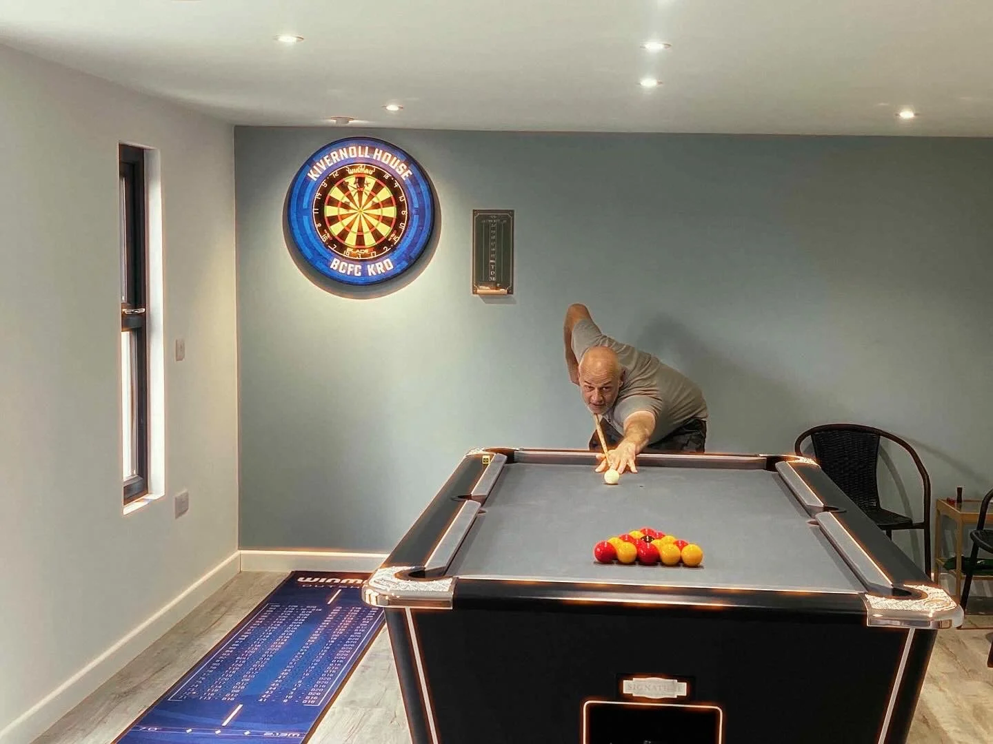 Launched in March 2025, our Games Room is the newest edition to our facilities here at Kivernoll House. Featuring a full sized pool table, a dart board, Sky TV and outdoor seating area. This Games Room is available for your use while you stay in our accommodation.